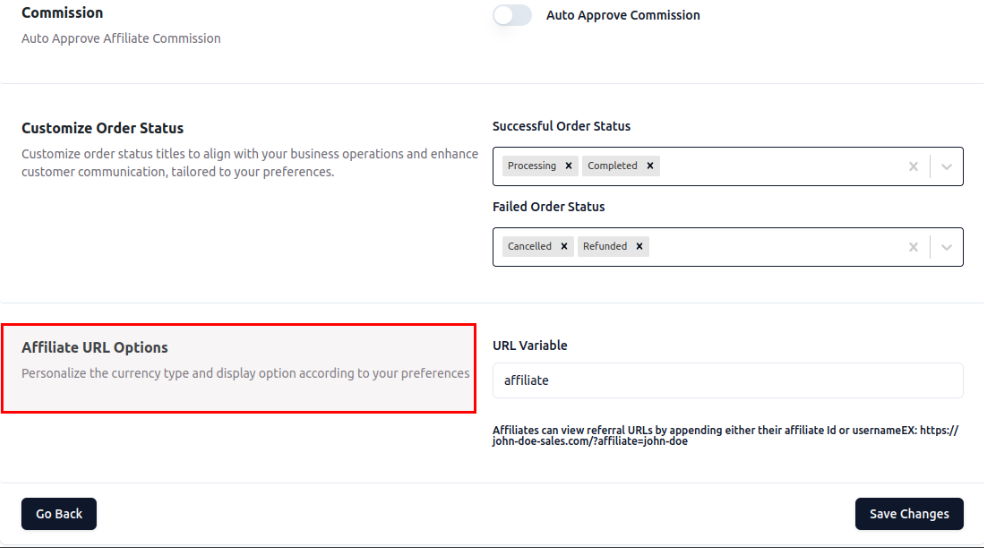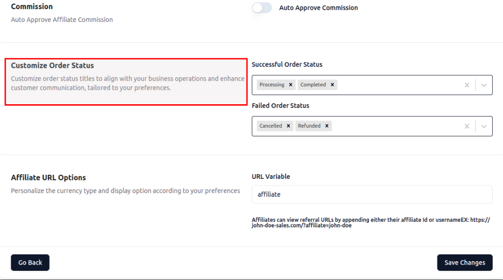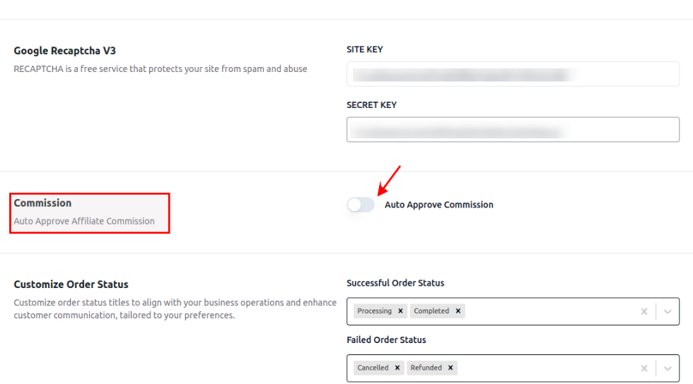Commission (Auto Approve Affiliate Commission) refers to the system in which affiliate commissions are automatically approved and processed without manual review or intervention. This setting streamlines the commission approval process, ensuring affiliates receive their earnings promptly and efficiently.