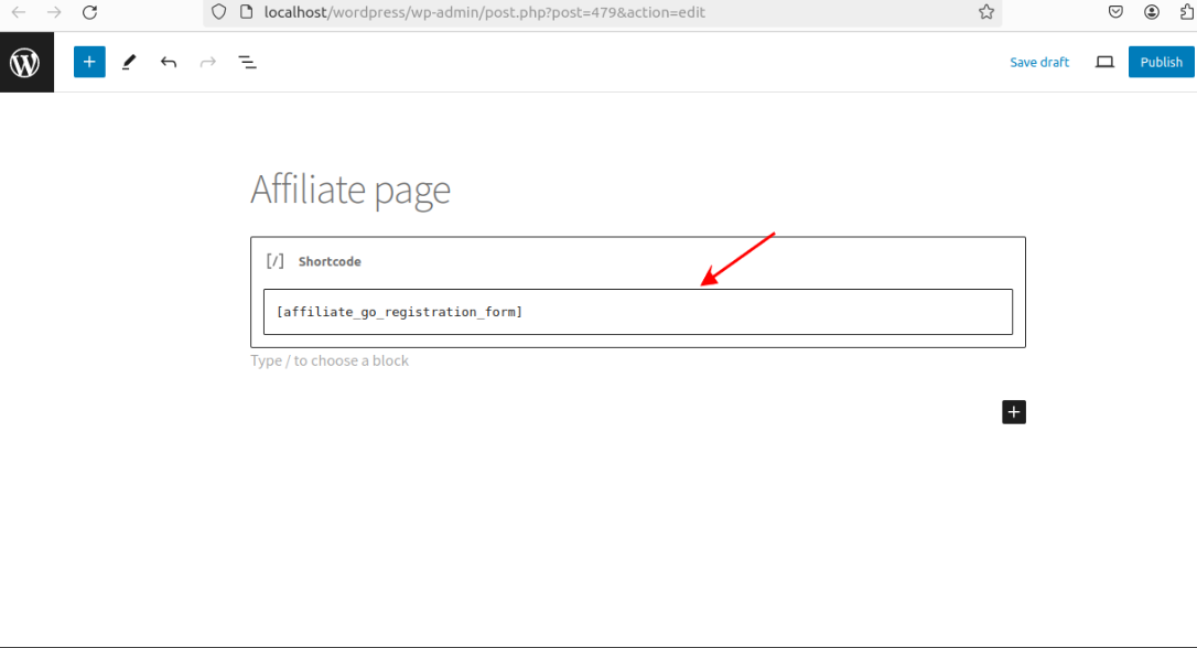 To create an affiliate registration form, you'll need to generate a dedicated page. This can be achieved by utilizing the shortcode provided within our Affiliates settings tab. To do that, follow these steps: