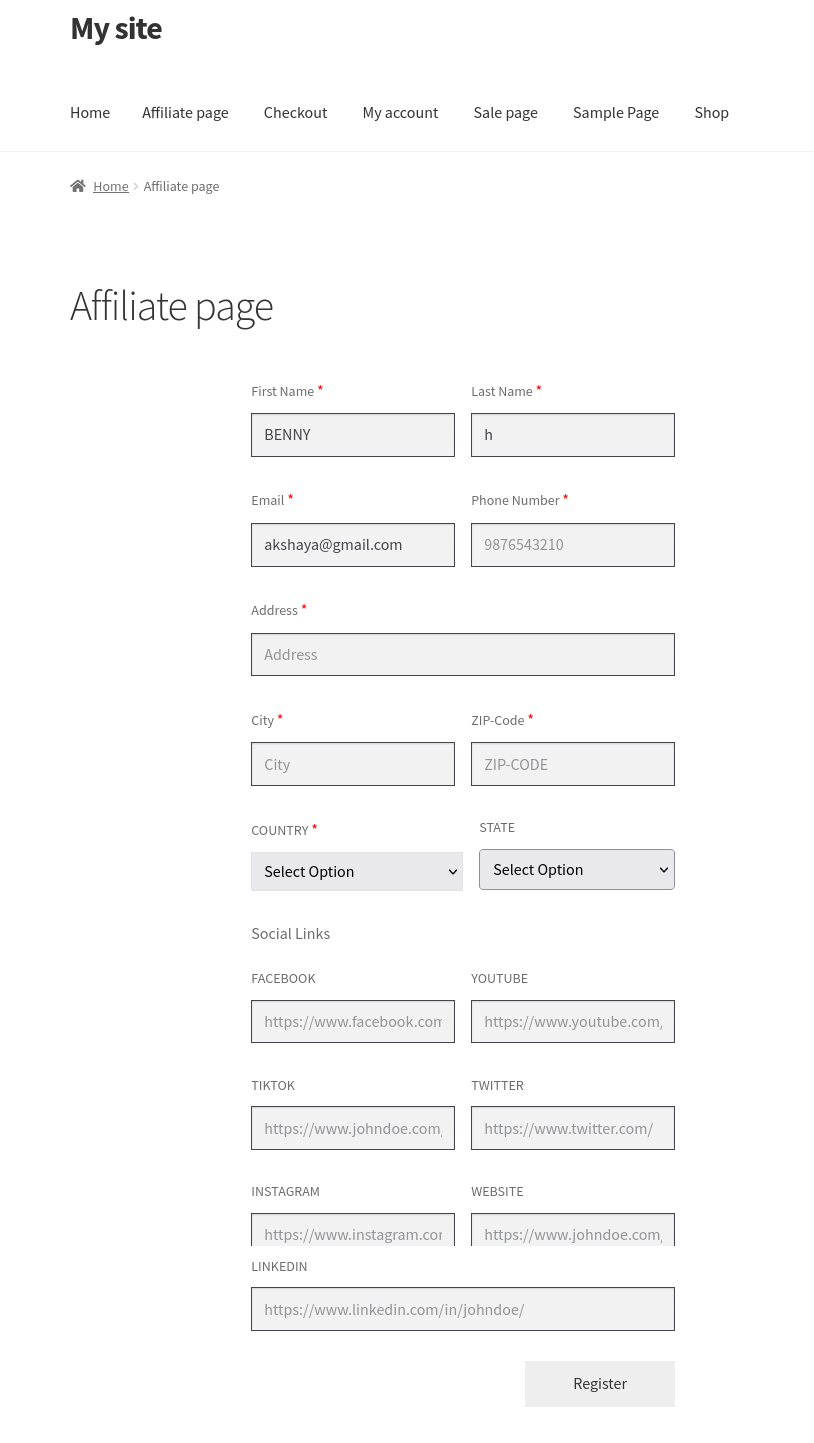 Upon completion of the aforementioned settings, the affiliate page will appear as follows: